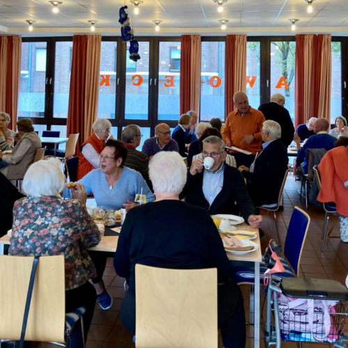 Dienstagmorgen, den 27. September begrüßte Angelika Schürings über 50 Seniorinnen und Senioren zum beliebten Seniorenfrühstück im AWO-Eck, Brandenberger Straße. Die Freude darüber, vor allem nach Corona, dort Bekannte zu treffen und sich auszutauschen wird sehr geschätzt.